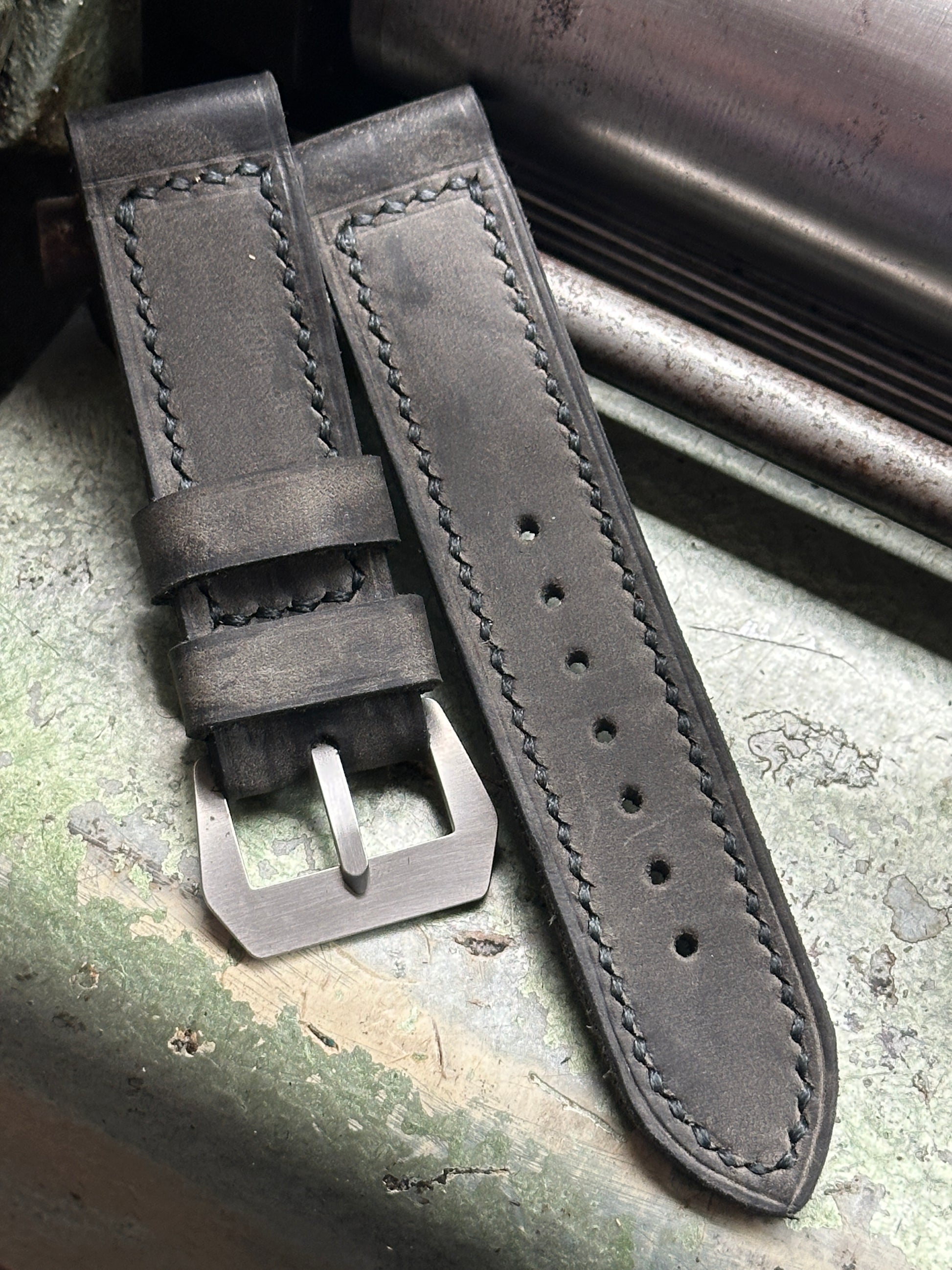 CUSTOM DARK GREY Vintage style nubuck strap for use with your Panerai or other watch with 22mm lug width.