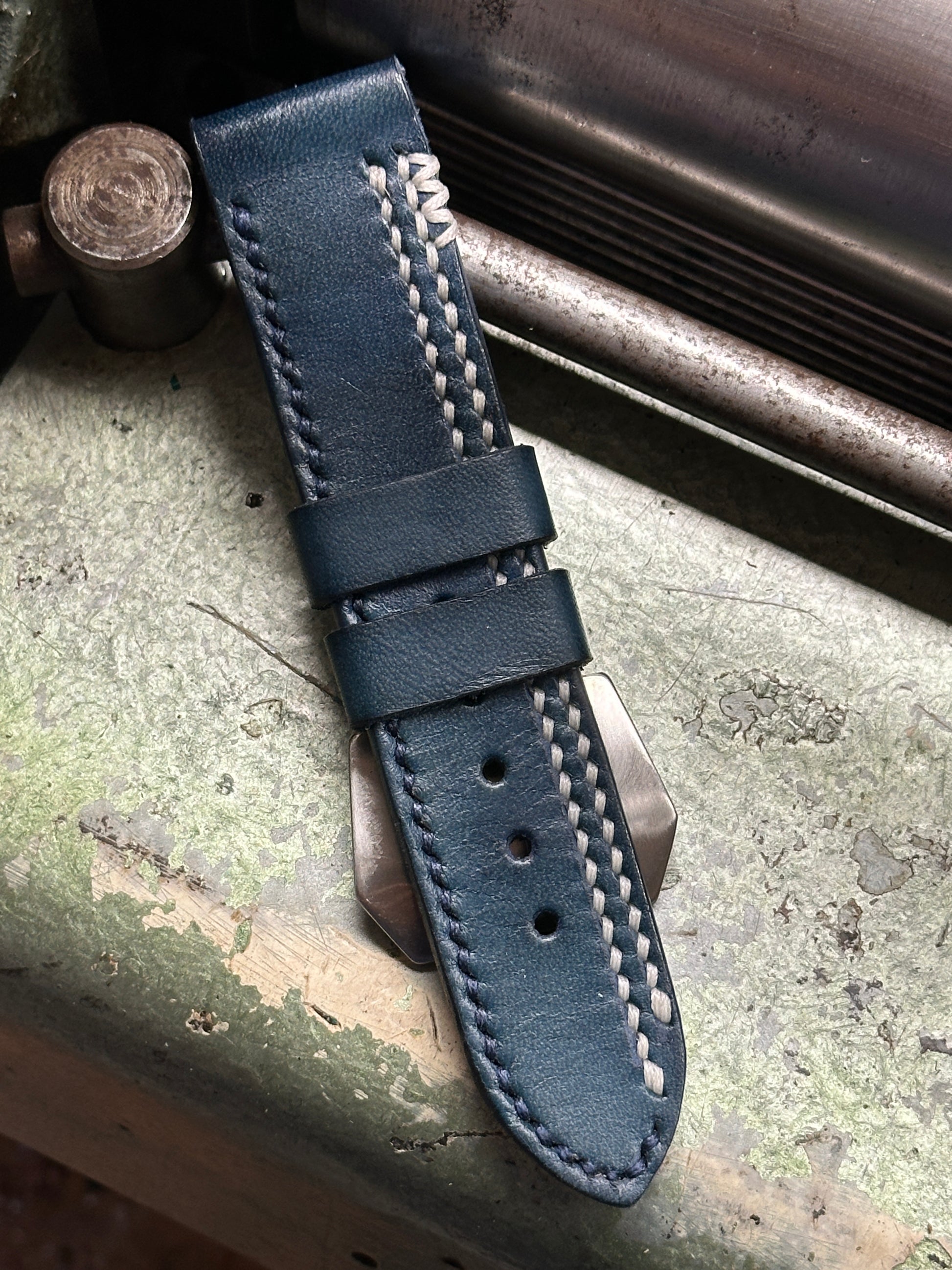 PHAEDRA CUSTOM PATINA BLUE - WHITE strap for use with your Panerai or other watch with a 24mm lug width.