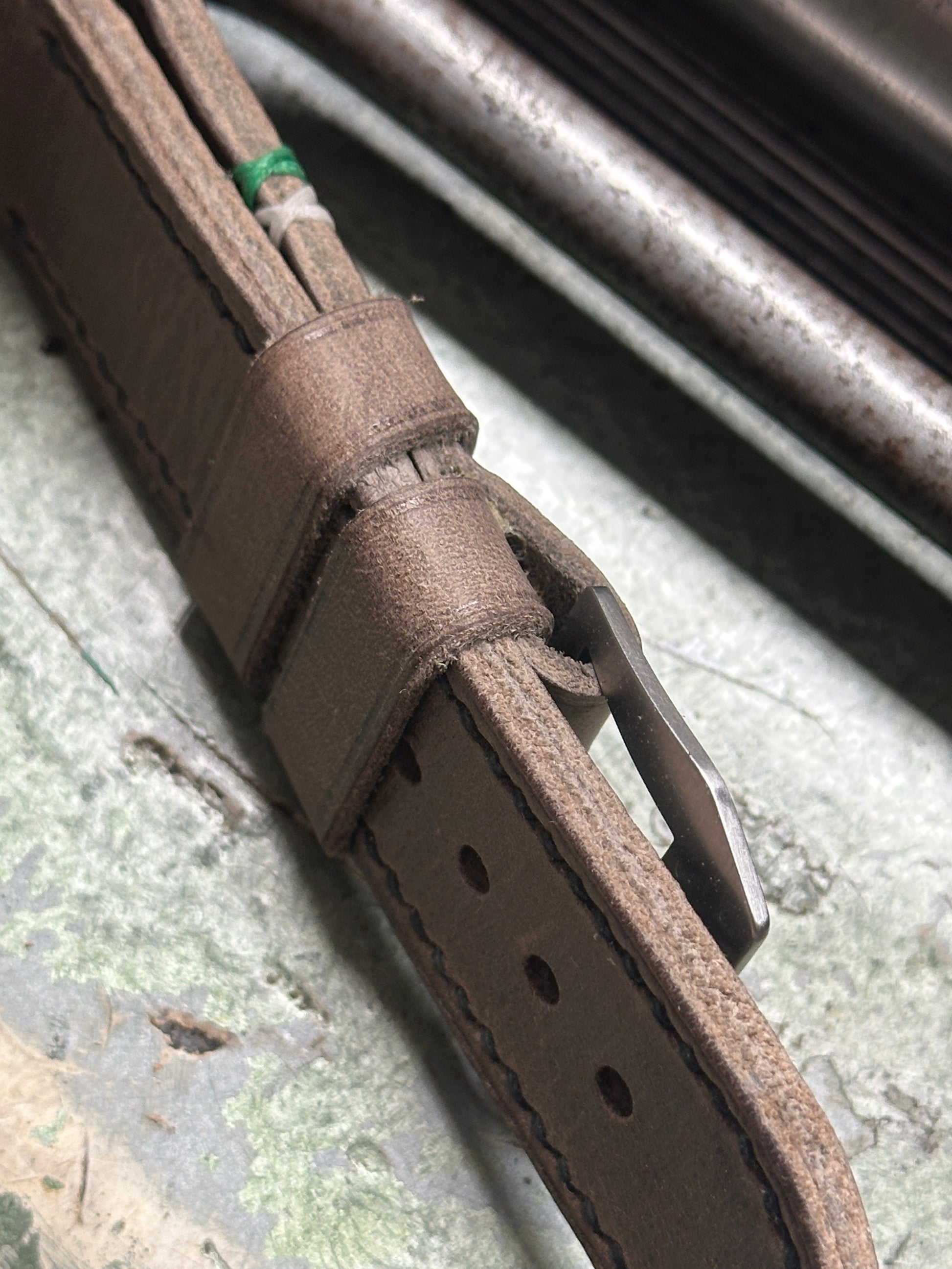 This superb Nubuck calf leather strap is completely handmade and also hand stitched from only the finest leather. 316L curved hand finished buckle.